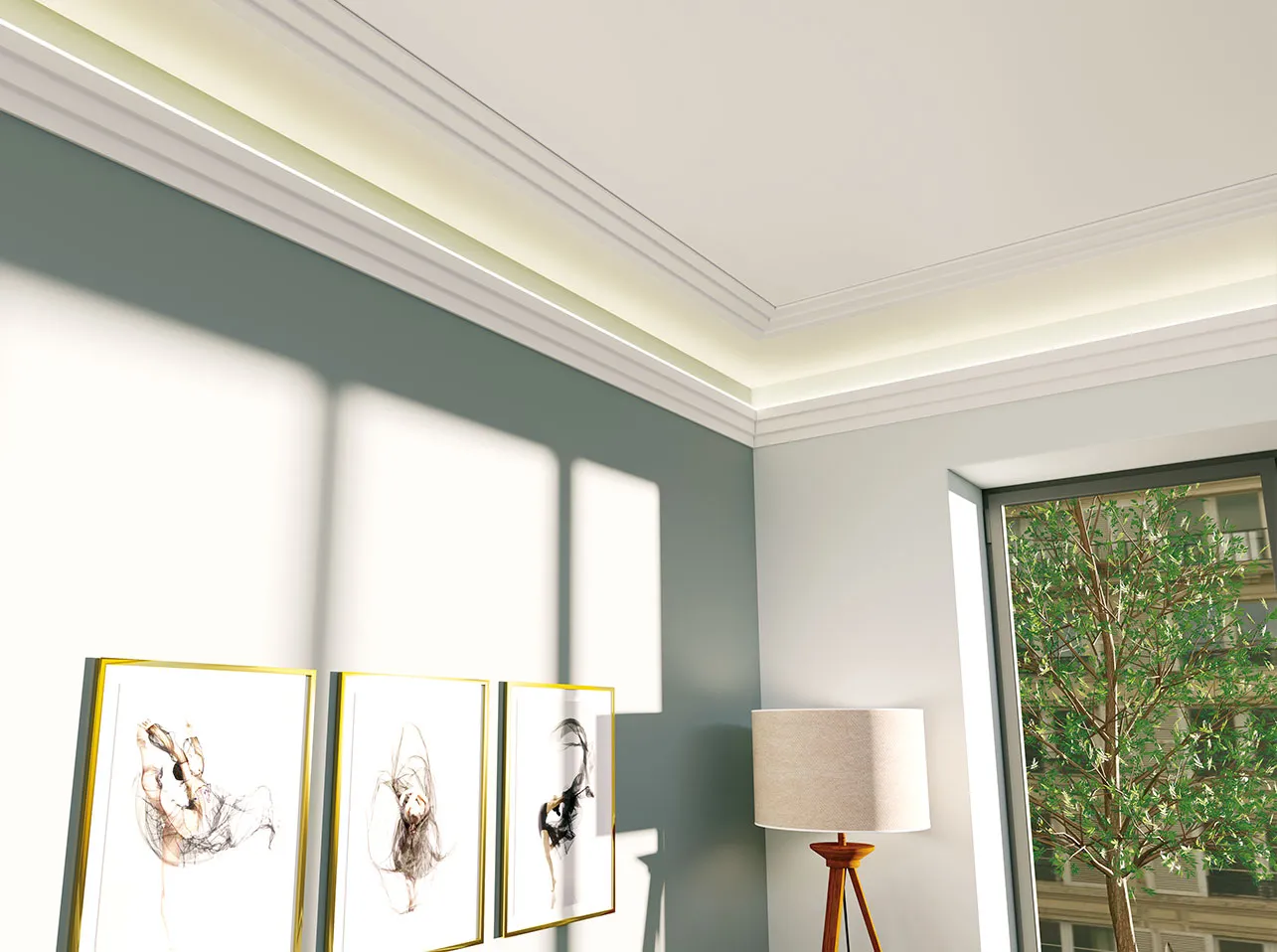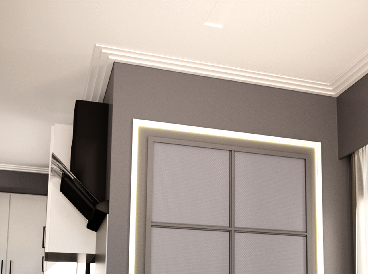 O perfil UP233 é um perfil versátil capaz de proporcionar um acabamento na parede, seja junto ao teto, no teto ou funcionar como Friso. Com um design moderno adapta-se a qualquer ambiente decorativo.